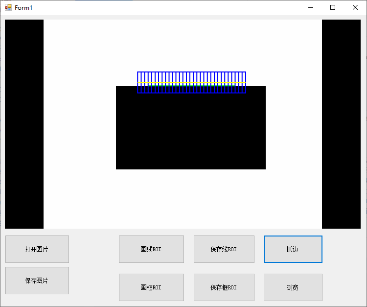直接在界面上点击“打开图片”->“画线ROI”(默认位置我都调好了,你也可以自己调整大小、位置)->“抓边”,过程如下: