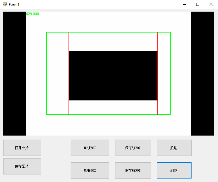 直接在界面上点击“打开图片”->“画框ROI”(默认位置我都调好了,你也可以自己调整大小、位置)->“测宽”,过程如下: