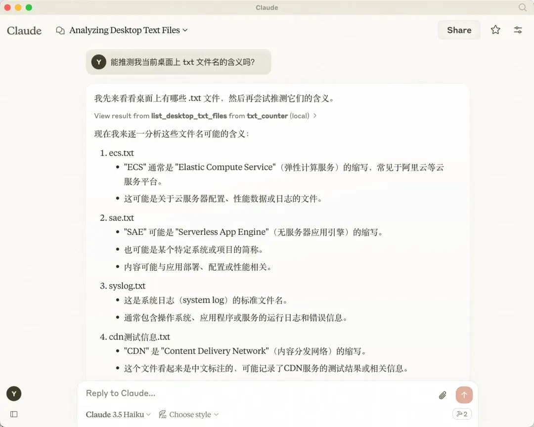 # 创建 MCP Servermcp = FastMCP("桌面 TXT 文件统计器")