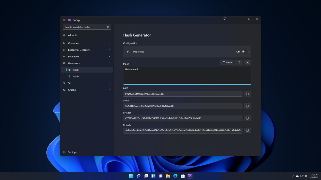 • 生成与测试:生成哈希值、校验和、Lorem Ipsum 文本、密码等,测试正则表达式、JSONPath、XML 等。