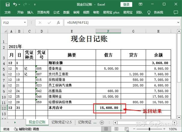 按【Ctrl+Enter】组合键返回计算结果,很明显此结果应当与最后一笔现金业务发生后的余额相等,进而可以通过它实现对现金余额的验证。