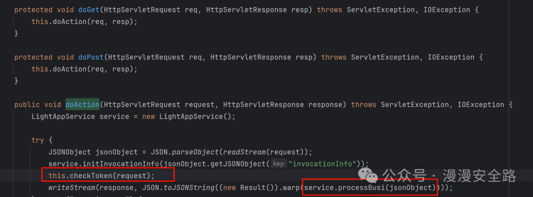 他这个token和tokenSeed都是由用户传入的tokenSeed对应数据包中的ucode过了token检测以后会进入到com.yonyou.esn.ulink.LightAppService#processBusi