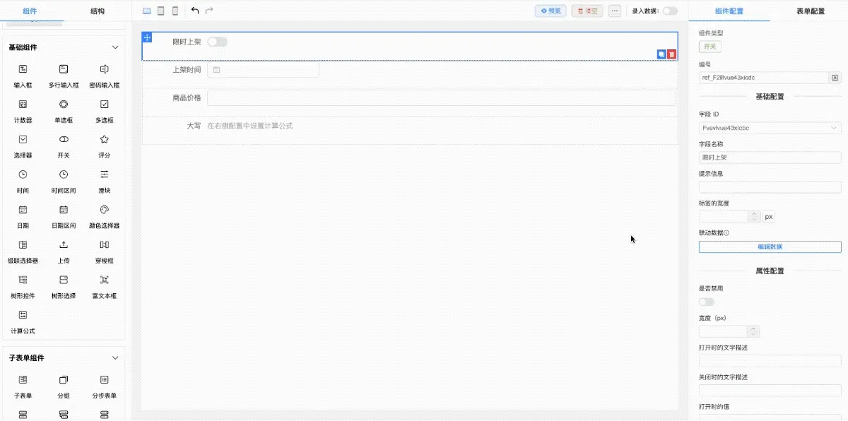 • 增加 changeField 事件,监听组件的字段 ID 变化