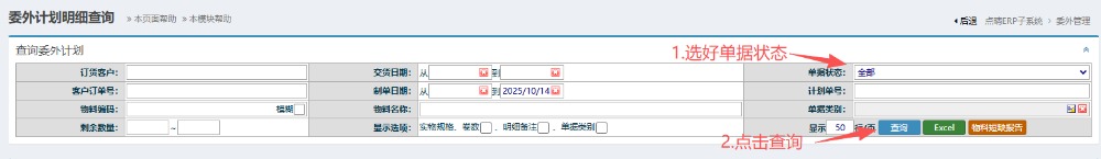 2.进入页面后,按图操作:选好单据状态,点击查询。