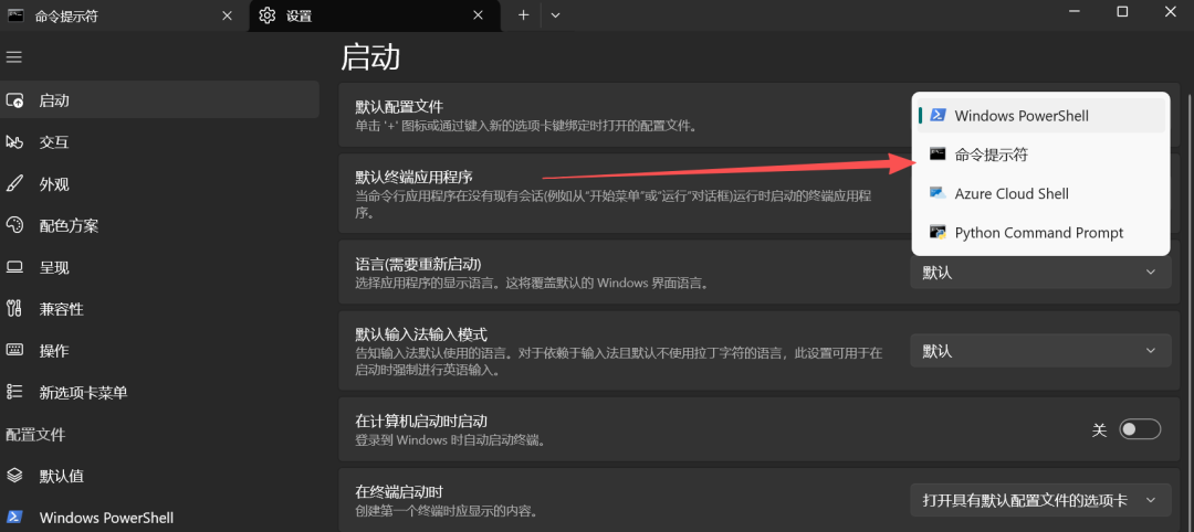 修改默认运行的你可以cmd或者pwshell窗口右键-设置