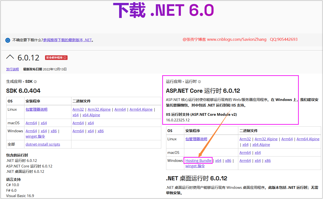 llS提供了一系列原生(Native)的Module。我们也可以使用任意.NET语言编写托管的Module,整合 IIS 和 ASP.NET Core 的 ASP.NET Core Module 就是一个原生的 Module。它利用注册的事件将请求从IIS管道中拦截下来,并转发给 ASP.NET Core 管道进行处理。相应的安装包从官方网站下载:https://dotnet.microsoft.com/zh-cn/download/dotnet/6.0