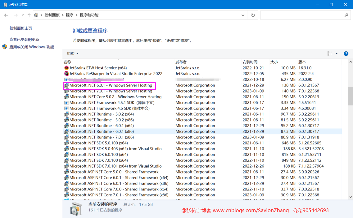 下载【Hosting Bundle】到本地之后开始安装,安装完成后到控制面板中查看